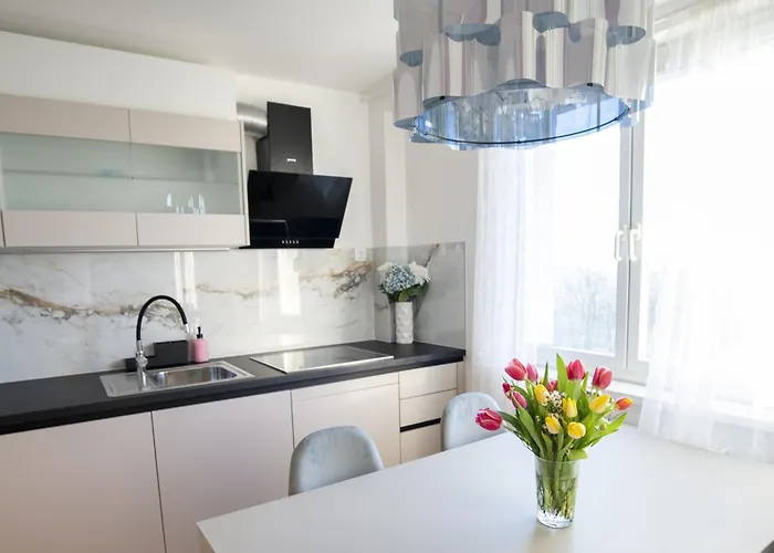 Desfrute da conveniência de cozinha equipada no o apartamento Central Elite Vista-With Parking, permitindo aos hóspedes preparar as suas próprias refeições caseiras. O apartamento Central Elite Vista-With Parking de 80 m² está a um passo de da paragem Zelena jama.